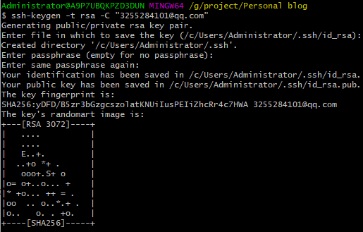 1 | ssh-keygen -t rsa -C "你的GitHub注册邮箱" |